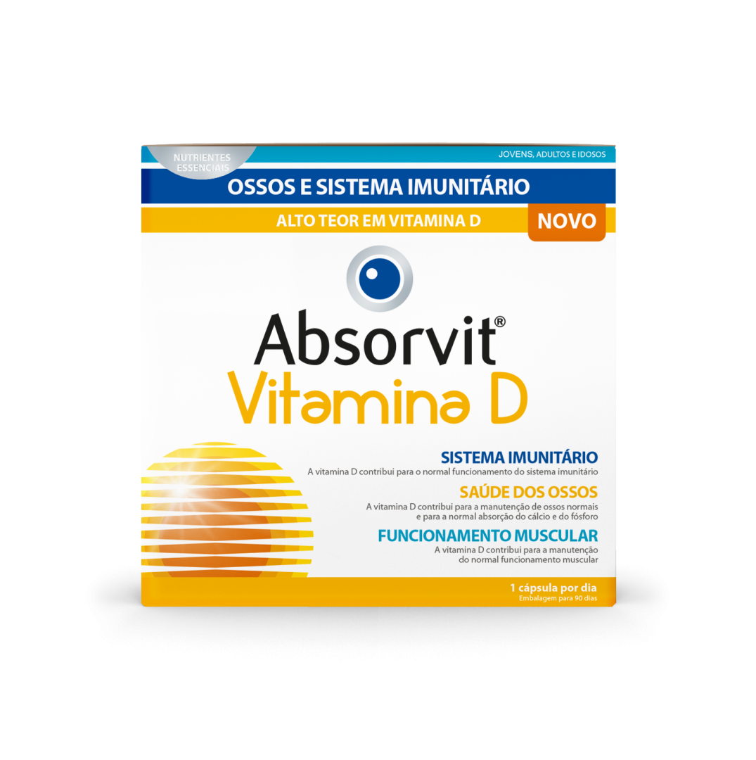 O Absorvit Vitamina D é um suplemento alimentar desenvolvido para apoiar o bem-estar geral e contribuir para o bom funcionamento do organismo. A vitamina D é essencial para a manutenção de ossos e dentes saudáveis, para o normal funcionamento do sistema imunitário e para o bom desempenho muscular.