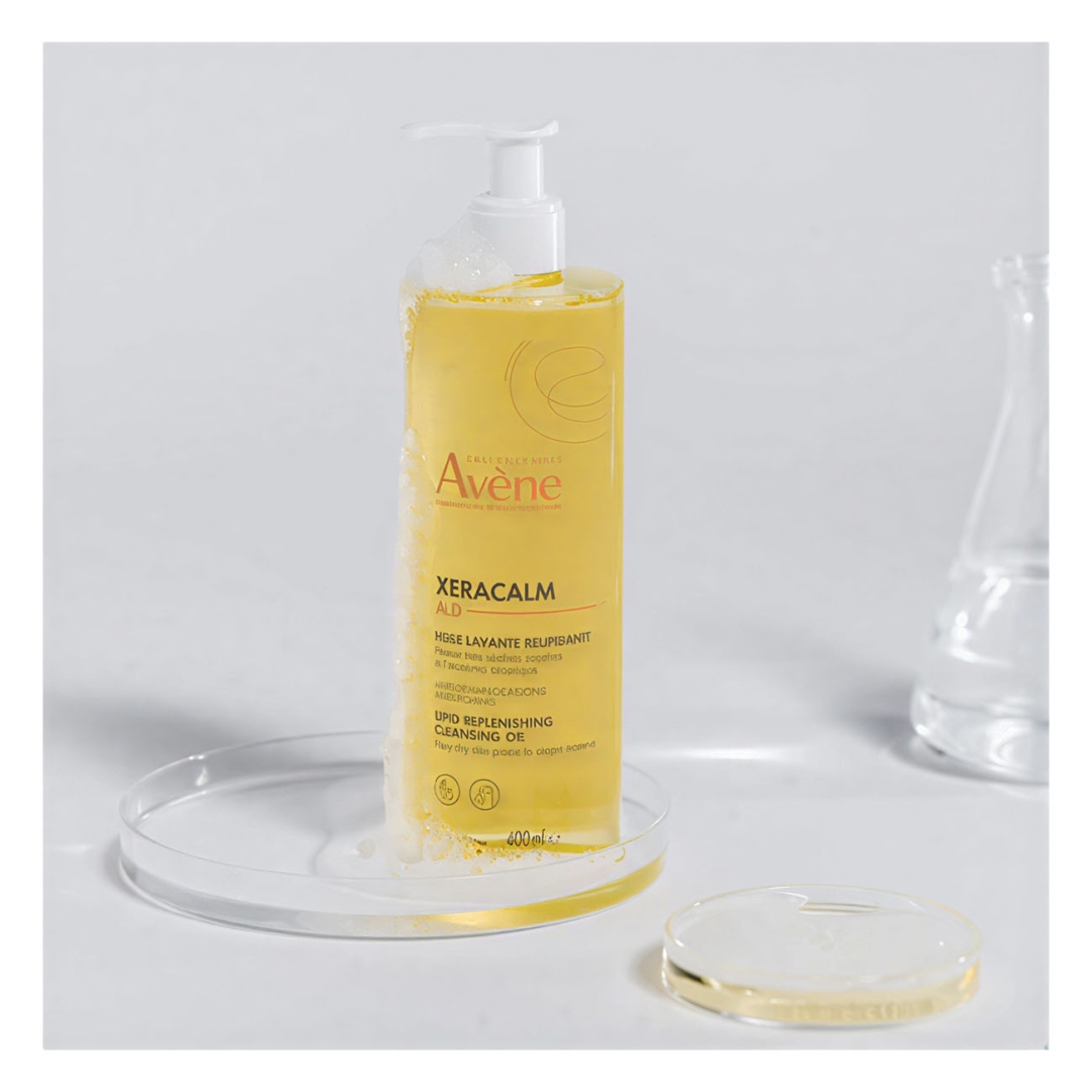 XeraCalm A.D Óleo de Limpeza Relipidante limpa suavemente e acalma a pele muito seca, com tendência a eczema atópico e prurido. Como primeiro passo na rotina antiprurido, deixa a pele suave e confortável e respeita o microbioma da pele. Sem sabão e com um pH fisiológico, pode ser utilizado durante as crises no rosto, corpo e couro cabeludo. A sua fórmula combina o primeiro ingrediente ativo pós-biótico derivado de Água termal d'Avène, I-modulia®, que reduz o prurido, estimula as defesas da pele e combate a irritação, com Cer-omega, lípidos semelhantes aos da pele conhecidos pela sua ação nutritiva e regeneradora sobre a barreira cutânea, e Água termal d'Avène, que é naturalmente calmante, suavizante e que atenua as irritações. Sem perfume e formulado para minimizar o risco de reações alérgicas, XeraCalm A.D Óleo de Limpeza Relipidante não arde nos olhos e é ideal para a pele de recém-nascidos, crianças e adultos.
