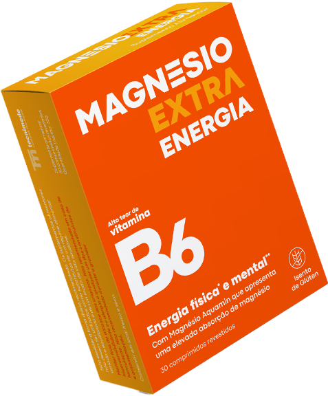 Magnésio Extra Energia com alto teor de vitamina B6 e Mgnésio Aquamin. Estes dois compostos contribuem para o normal metabolismo produtor de energia e uma normal função psicológica.