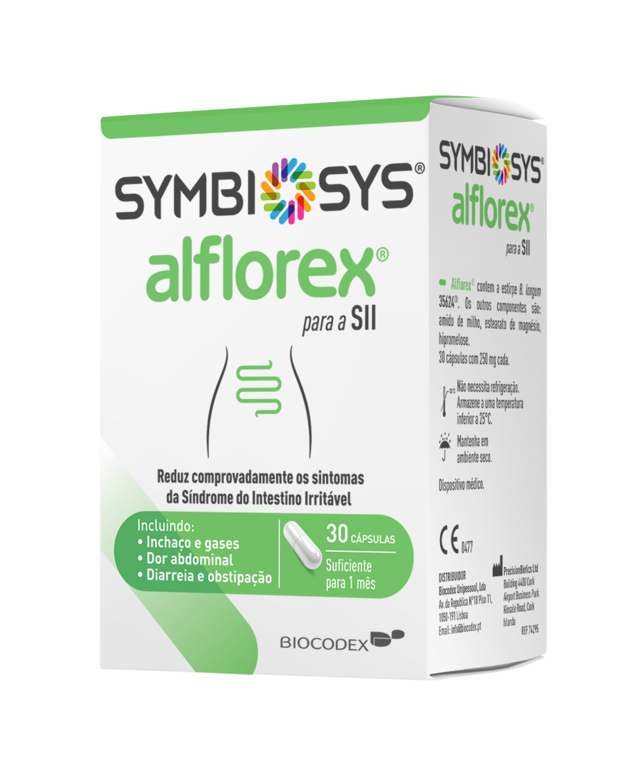 Suplemento alimentar com Bifidobacterium longum, cálcio, e vitaminas B5 e B6, que contribui para o bem-estar digestivo e psicológico.
